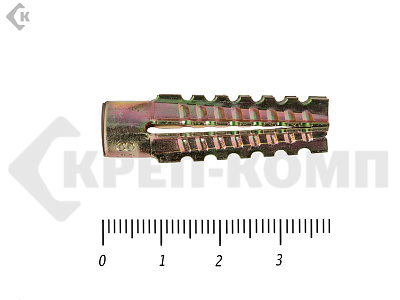 Дюбели забиваются молотком в подготовленные отверстия, затем в них вкручивается резьбовой элемент, удерживающий целевой груз. Длина изделий составляет 30 - 60 мм, диаметр - 5, 6, 8 и 10 мм.