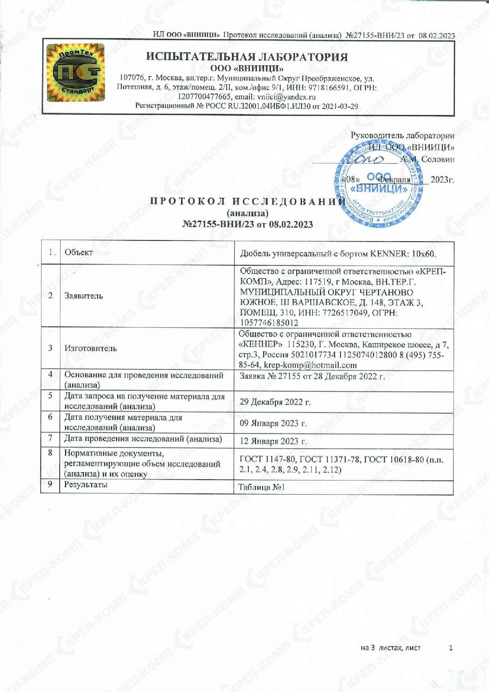 Скачать Дюбель универсальный с бортом KENNER 12х71