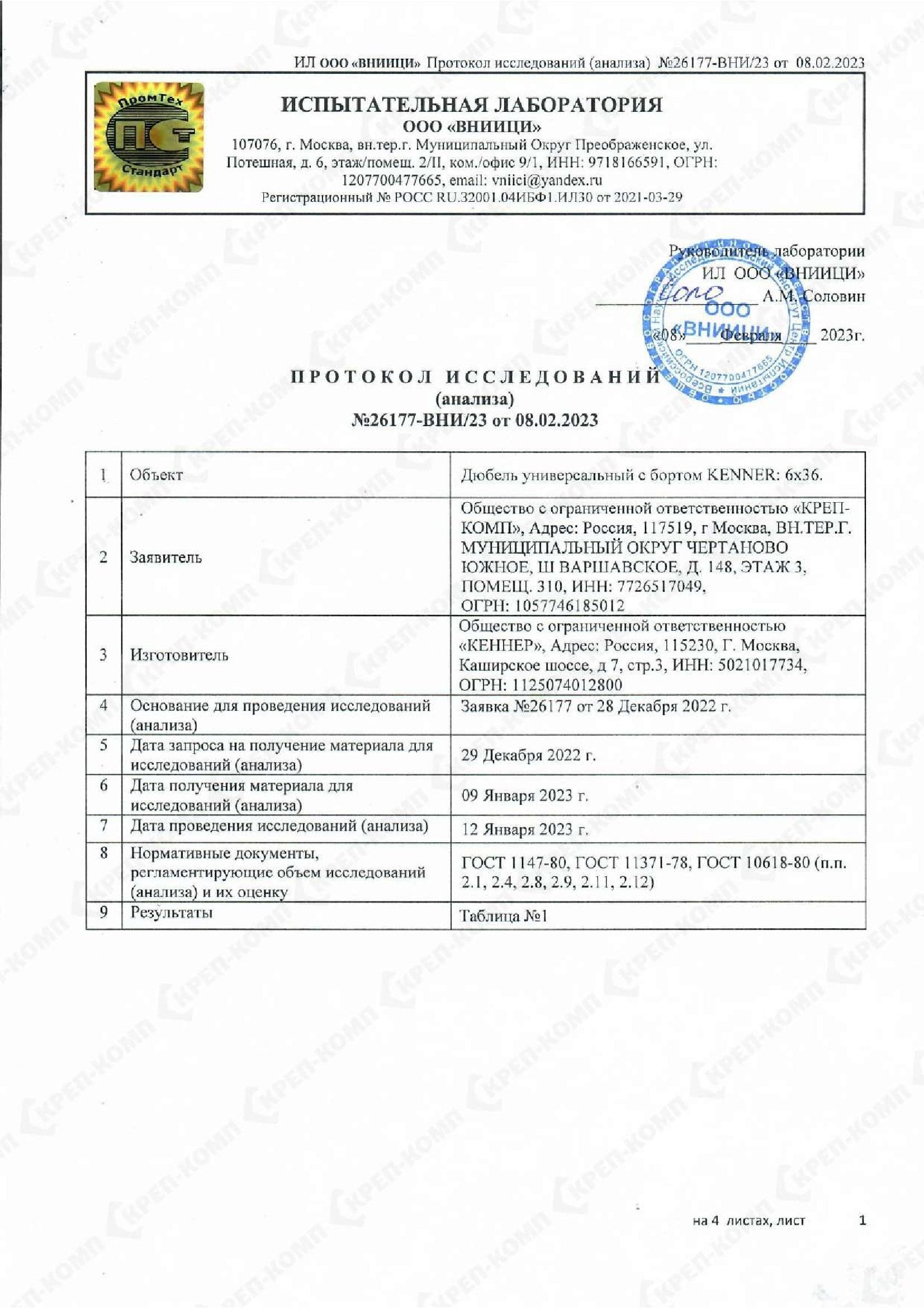 Скачать Дюбель универсальный с бортом KENNER 6х36